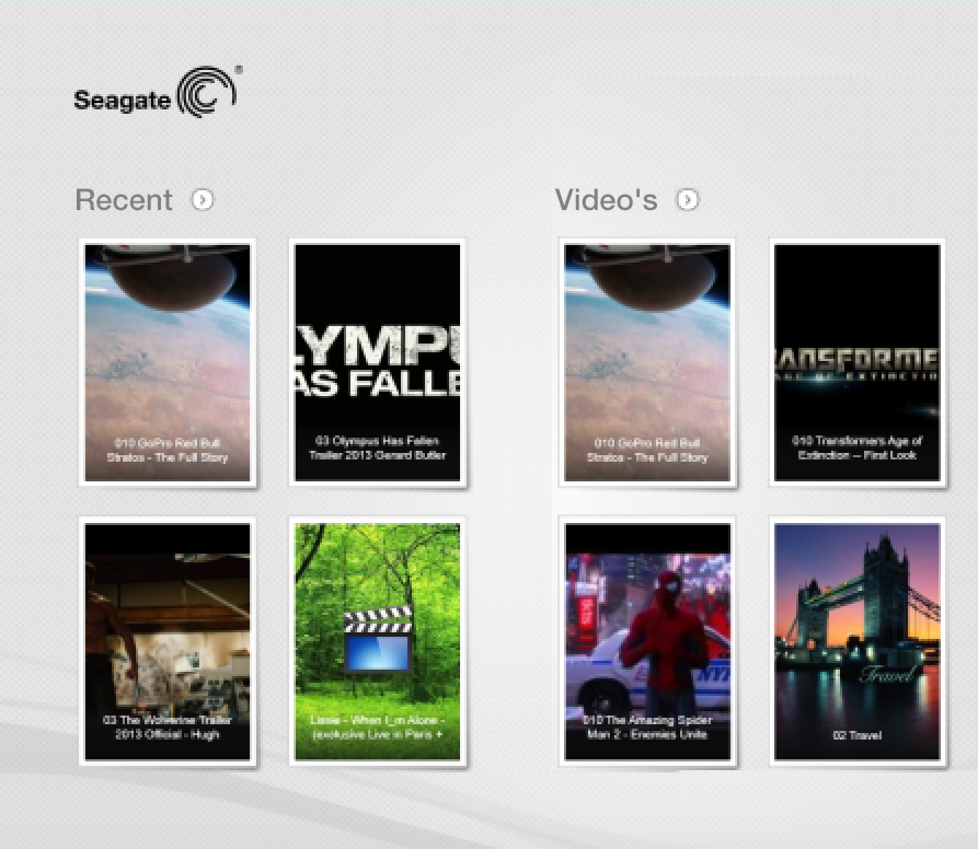 De Startpagina biedt een snel overzicht van de bibliotheken en mappen op uw opslagapparaat en uw mobiele apparaat.