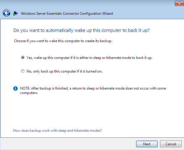 - 选择是否要让 WSS NAS 唤醒 PC 以创建其备份。