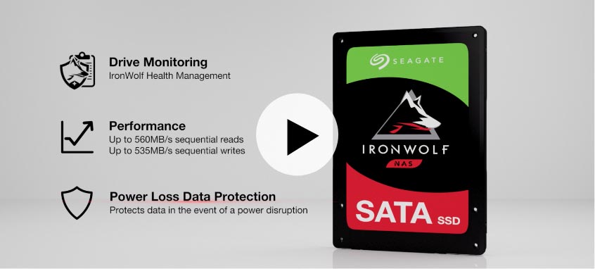Seagate IronWolf® SSDは、240GBから3.84TBまでの容量を取り揃えたNAS専用のドライブです。各ドライブにはAgileArray™ ファームウェアが搭載されており、厳しい常時稼働のマルチユーザー環境でNASエンクロージャを最大限に活用し、オールフラッシュ・アレイ (AFA) や階層化キャッシング対応NASで使用できます。