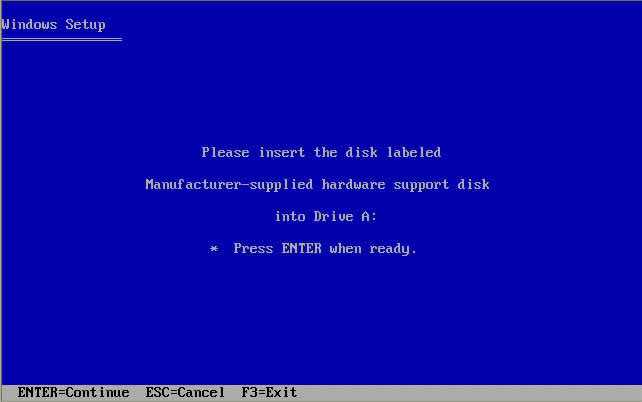 - 드라이버가 로드되면 정상 Windows XP/2000 설치를 계속 수행합니다.