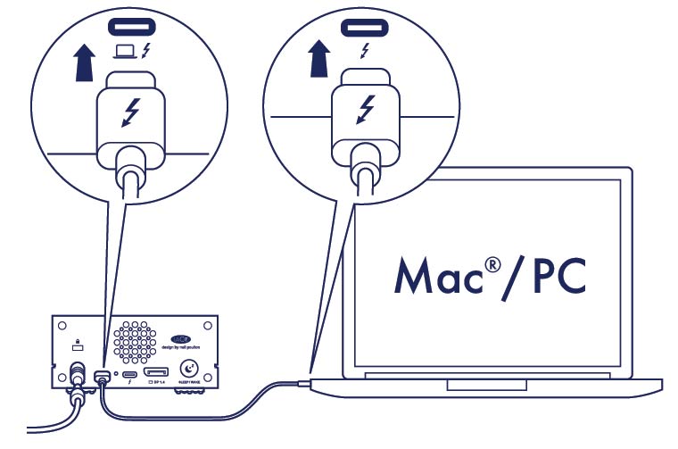 Connect to computerTo maximize performance, use the Thunderbolt 3 cable to connect 1big Dock's host port to your computer's Thunderbolt 3 or USB‑C 3.1 port.