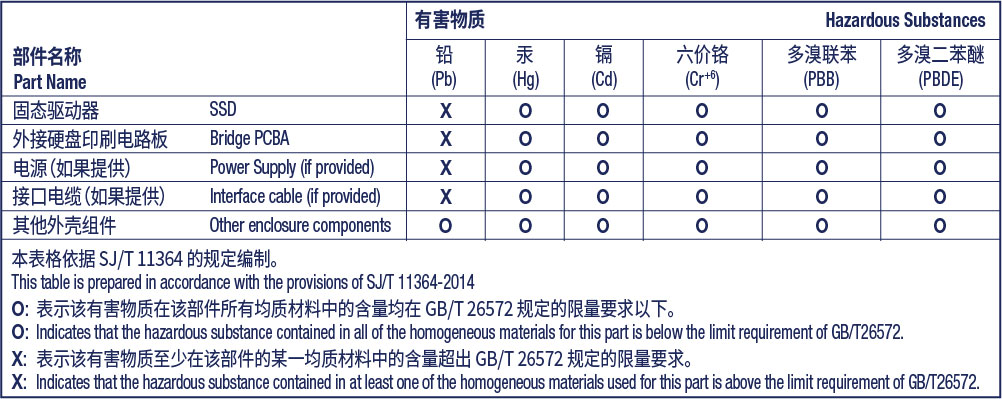 Taiwan RoHS refers to the Taiwan Bureau of Standards, Metrology and Inspection’s (BSMI’s) requirements in standard CNS 15663, Guidance to reduction of the restricted chemical substances in electrical and electronic equipment. Beginning on January 1, 2018, Seagate products must comply with the “Marking of presence” requirements in Section 5 of CNS 15663. This product is Taiwan RoHS compliant. The following table meets the Section 5 “Marking of presence” requirements.