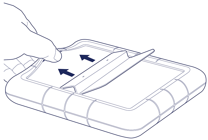 Gently push the stand at an angle to insert it between the bumper and the drive enclosure.