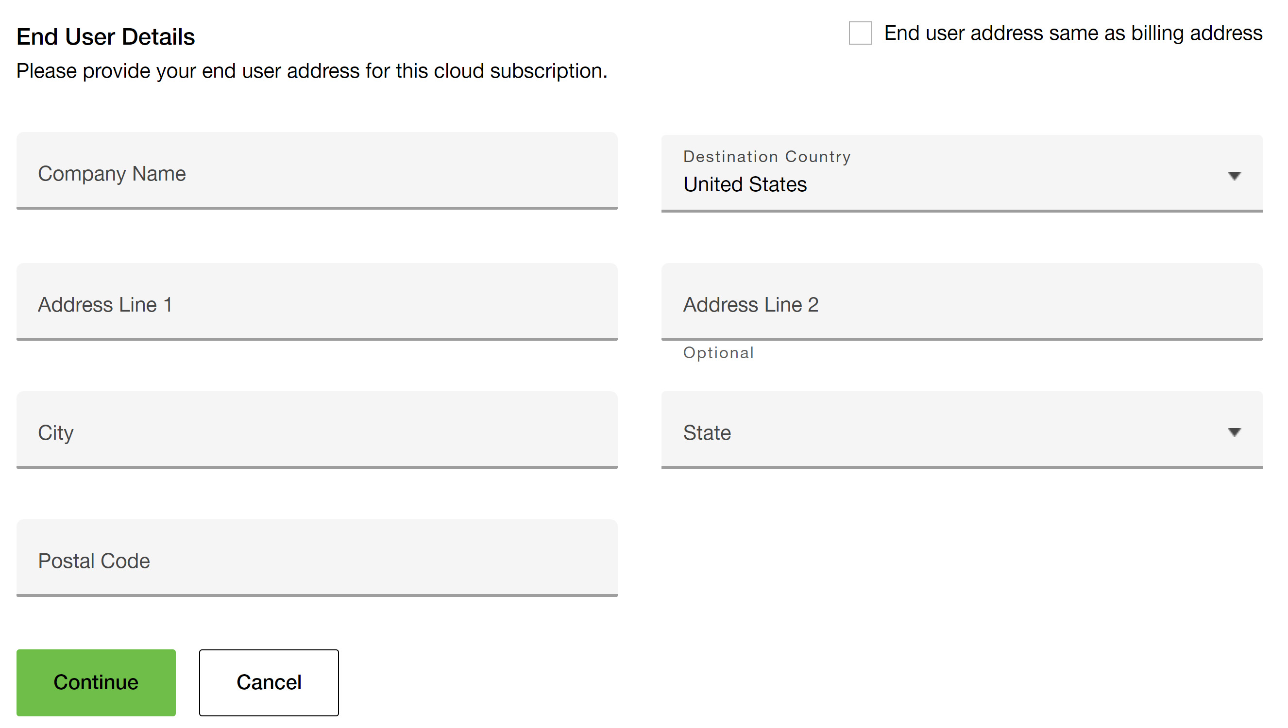 - Enter the end user details and click Continue.