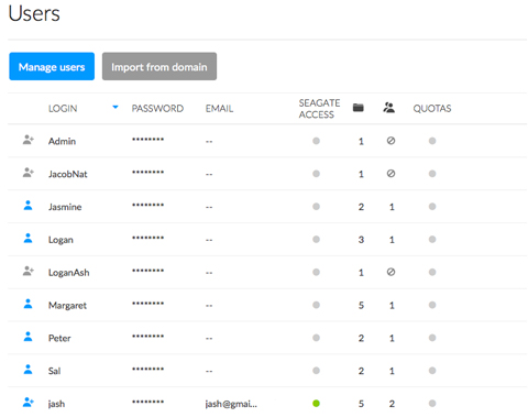 A user can access NAS shares that have been assigned to him by the administrator (see Shares ). When accessing the shares for the first time, the user is prompted for the password created by the administrator on the Users page (see Shares: Access and Transfer Files). In addition, a user can log on to NAS OS using his login and password, which is very helpful with Seagate MyNAS remote access. However, NAS OS management rights are limited for standard users.