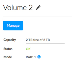 Internal volumes are the volumes created from the disks inserted into the NAS’s enclosure. External volumes are storage devices connected to the USB or eSATA ports. Click on a volume to review and adjust its settings.