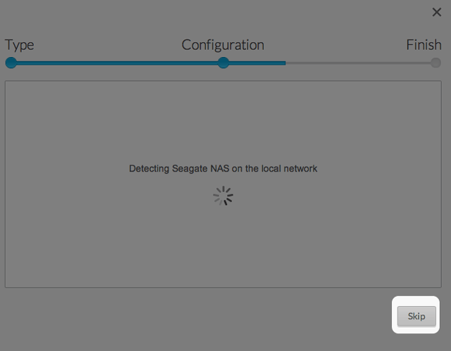 6. The wizard will search the local network for a NAS OS device. You can select Skip to move to the next step.