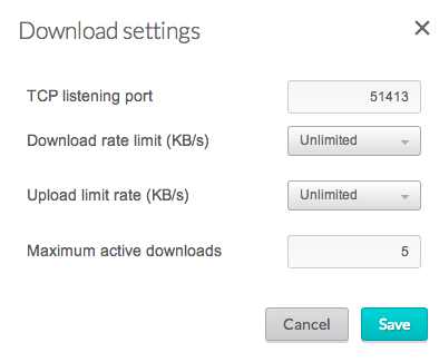 - TCP Listening port: Enter a router port number through which the download service will operate.