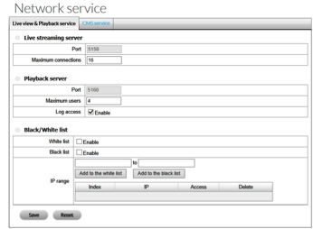 For Maximum Connections, one connection means that one user connects to one camera. However, a single user can connect to more than one camera. Each connection is counted when calculating the maximum connections. For example, if maximum connections is set to 16, 4 users can connect to 4 cameras.