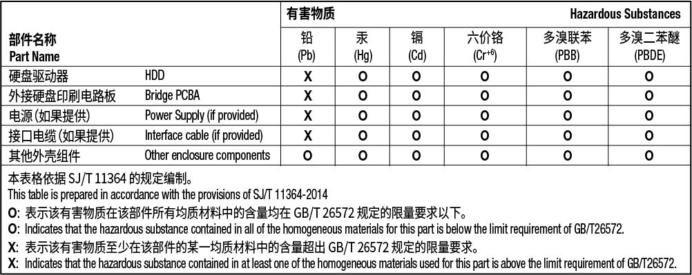 台灣RoHS是指台灣標準局計量檢驗局(BSMI)對標準CNS15663要求的減排電子電氣設備限用化學物質指引。從2018年1月1日起,Seagate產品必須符合CNS15663第5節「含有標示」要求。本產品符合台灣RoHS。 下表符合第5節「含有標示」要求。
