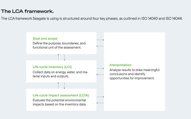 The LCA framework Seagate is using is structured around four key phases, as outlined in ISO 14040 and ISO 14044: