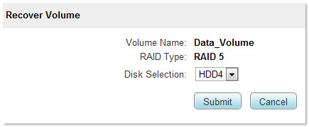 The Recover Volume process begins. You will no longer be able to access the NAS until the process has completed.