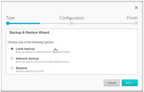 Optimized backups are incremental and only copy new or revised files. Note that certain drive file systems are not compatible with NAS OS optimized backups.