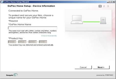 - At this point, you will see "GoFlex Home Setup - Device Information" screen.