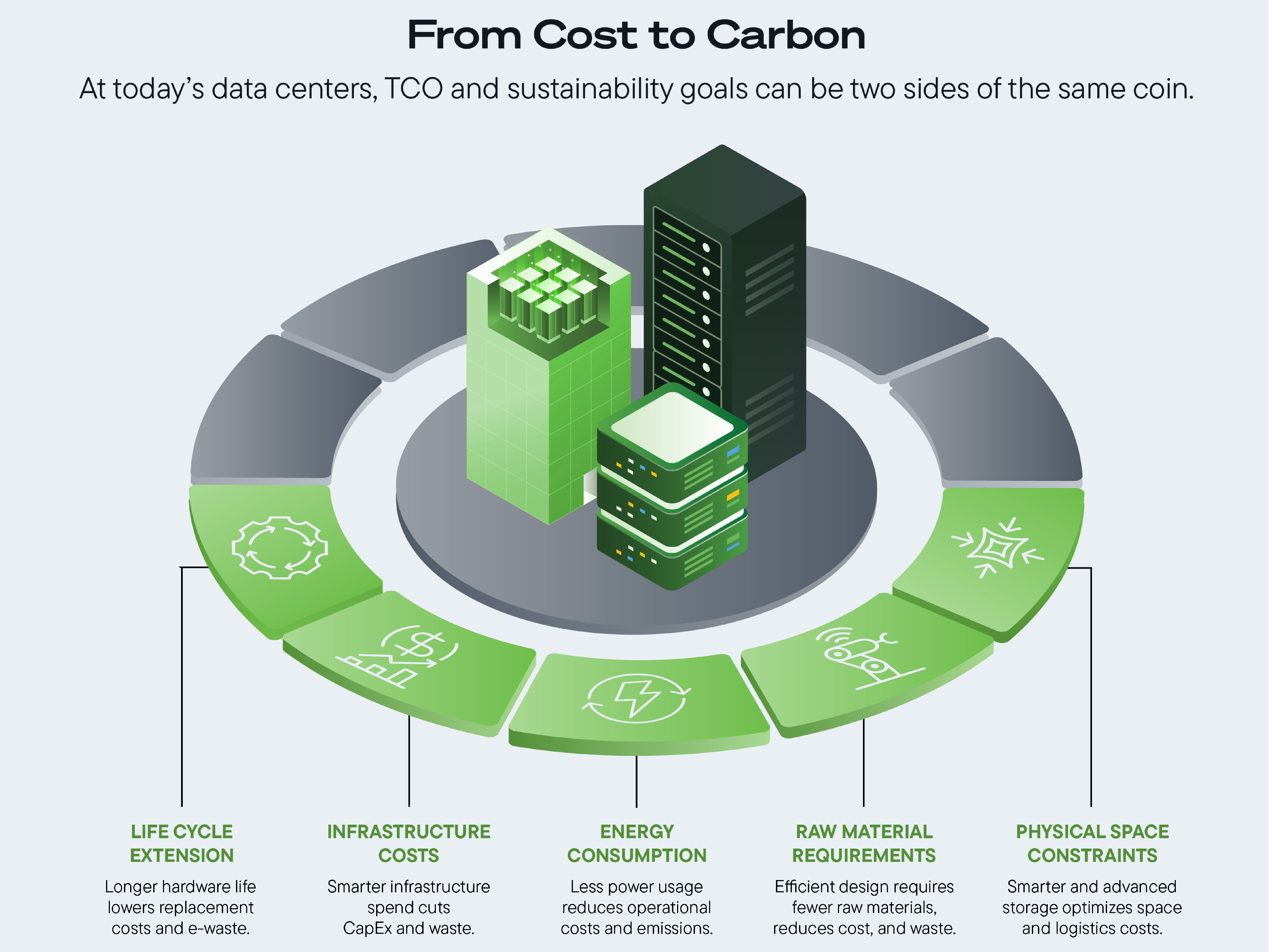 Storage racks alone account for 24% of operational and 45% of embodied emissions in general-purpose cloud data centers, according to HotCarbon's research¹. Storage servers carry so many storage devices they become the dominant energy consumers.